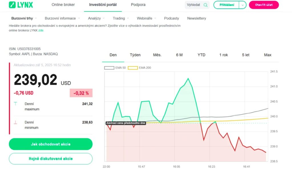 - Cena akcií Apple: 239,07 $