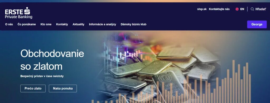 Slovenská sporiteľňa síce nepredáva fyzické zlato priamo vo svojich pobočkách, no prostredníctvom ERSTE Private Banking ponúka prístup k širokej palete produktov spojených so zlatom.