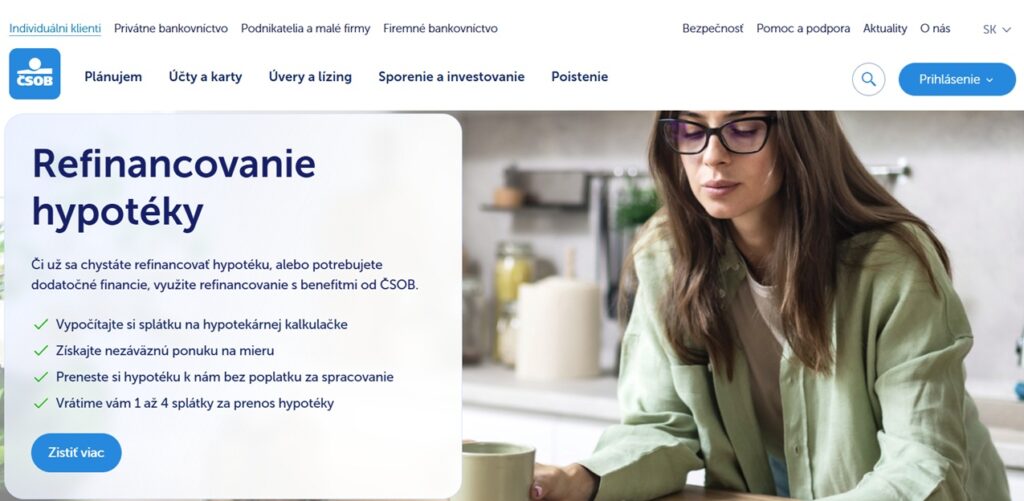 Ak niekto zvažuje refinancovanie hypotéky, ČSOB ponúka komplexné riešenia pre optimalizáciu splátok a úrokových sadzieb. Cieľom ČSOB refinancovania hypotéky je znížiť mesačné splátky, zlúčiť viacero úverov do jedného alebo získať dodatočné financie napríklad na rekonštrukciu.